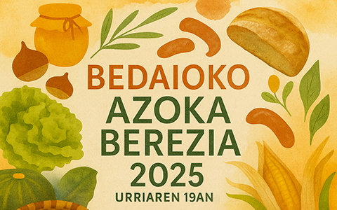 Urtero bezala, Bedaioko Azoka Berezia itzuli da, bertako produktuei eta auzolanari esker antolatua. Urriaren 19an, goizeko 10:00etatik 13:45ra, ospatuko da frontoian. Azoka honek aukera paregabea eskaintzen du gure lurrak ematen dituen produktu oparoak ezagutzeko eta etxera kalitatezko produktuak eramateko. Garaiko eta KM0-ko produktuak izango dira protagonista, beste behin: mondejuak, etxeko ogiak, baratzetik zuzenean ekarritako barazkiak, […]